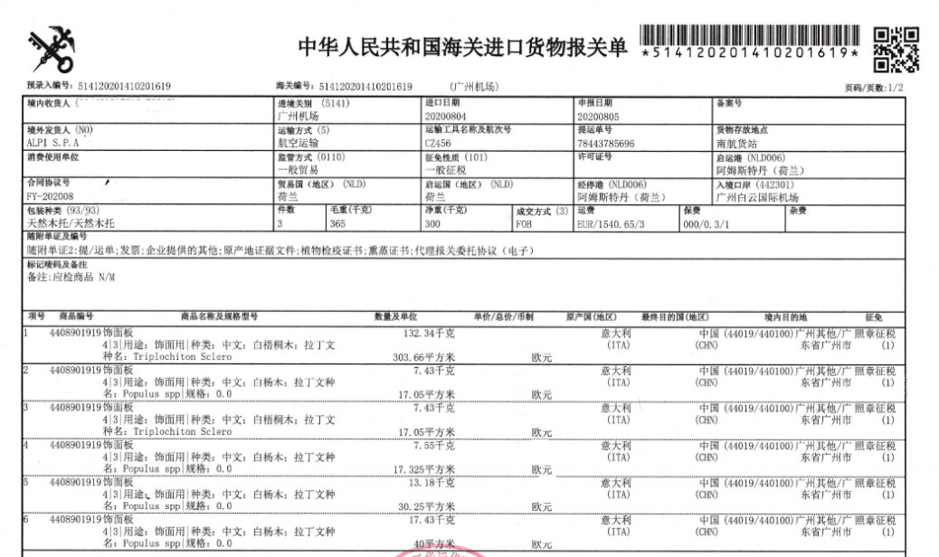 荷兰饰面板进口报关品名:饰面板HS CODE(商品编码/海关编码): 4408901919商品描述: 其他家具饰面用单板申报要素: 0:品牌类型;1:出口享惠情况;2:用途[饰面用等];3:种类[中文...
